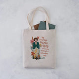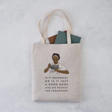 A strong and sturdy tote bag with an empowering quote in bold red text. A great addition to a feminist product collection.