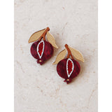 Pomegranate statement earrings with gold mirror, burgundy and red marbled acrylics with hand inked details.