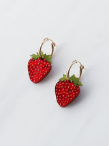 Our bestselling strawberry earrings made from acrylic and wood with 14k gold-filled hoops.